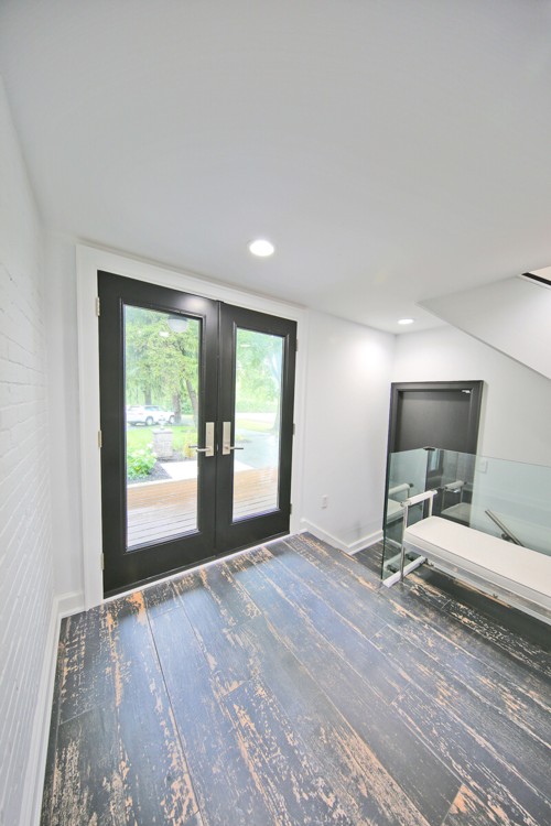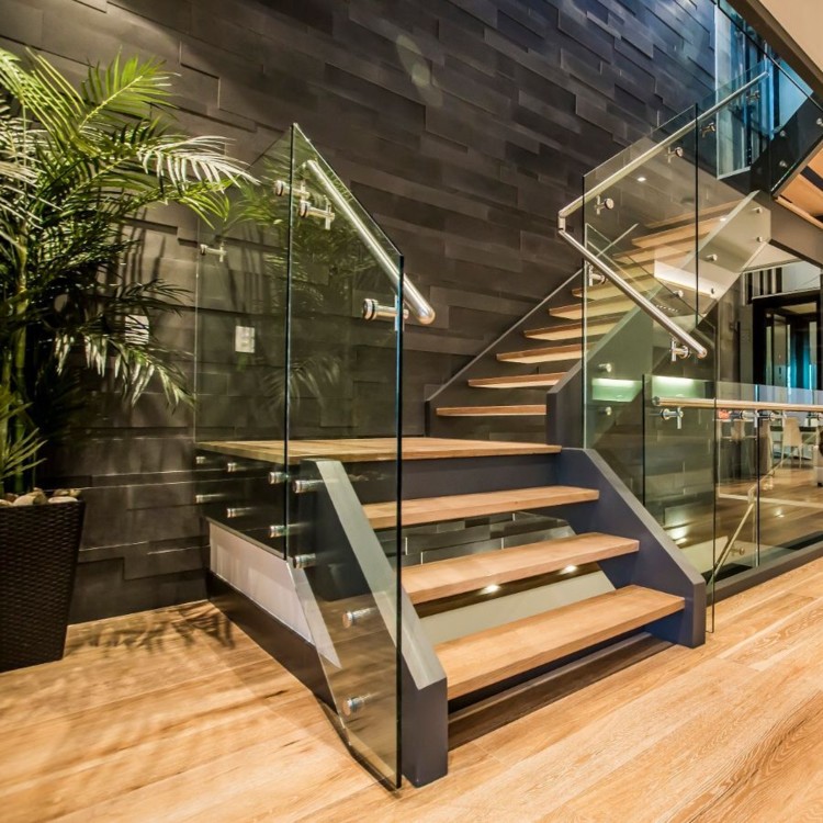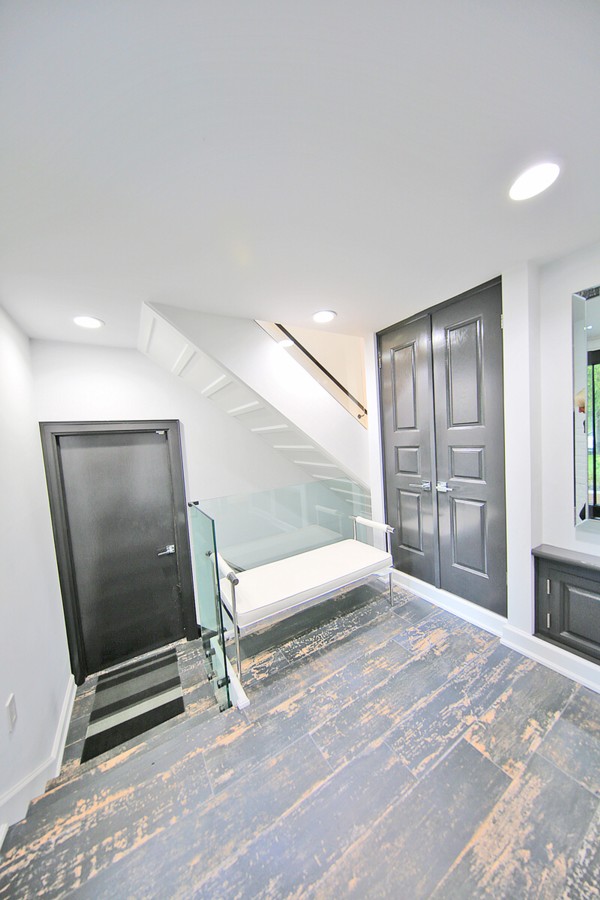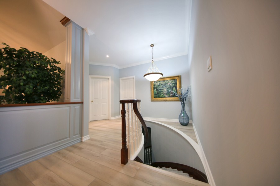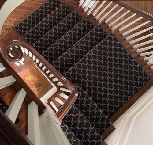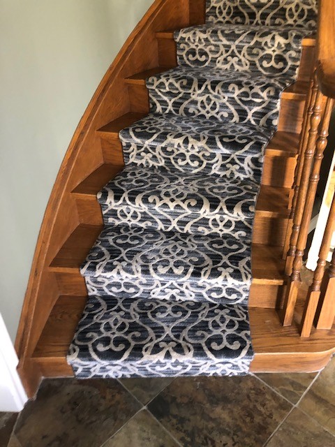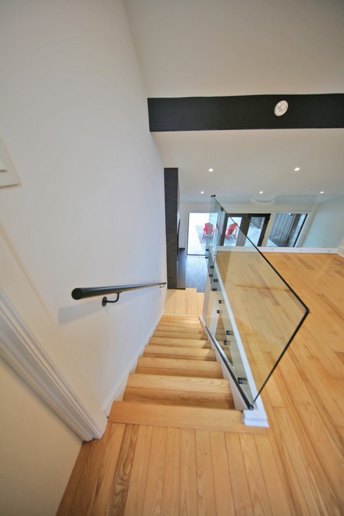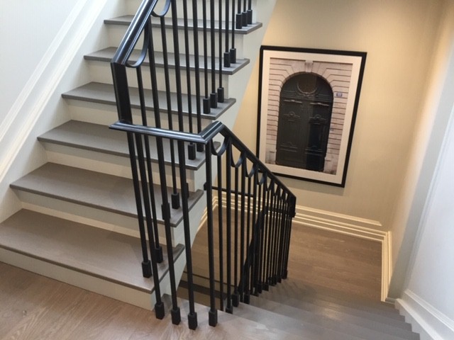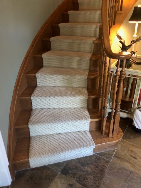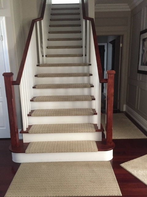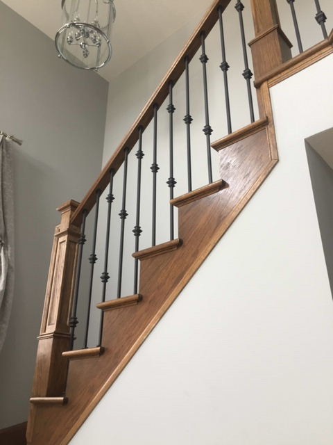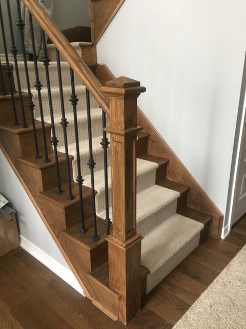 Staircase stained to custom match hardwood flooring