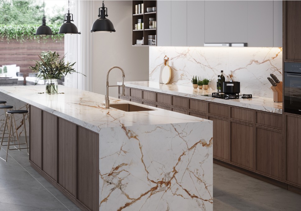 and beautiful natural Calacatta marble counters |