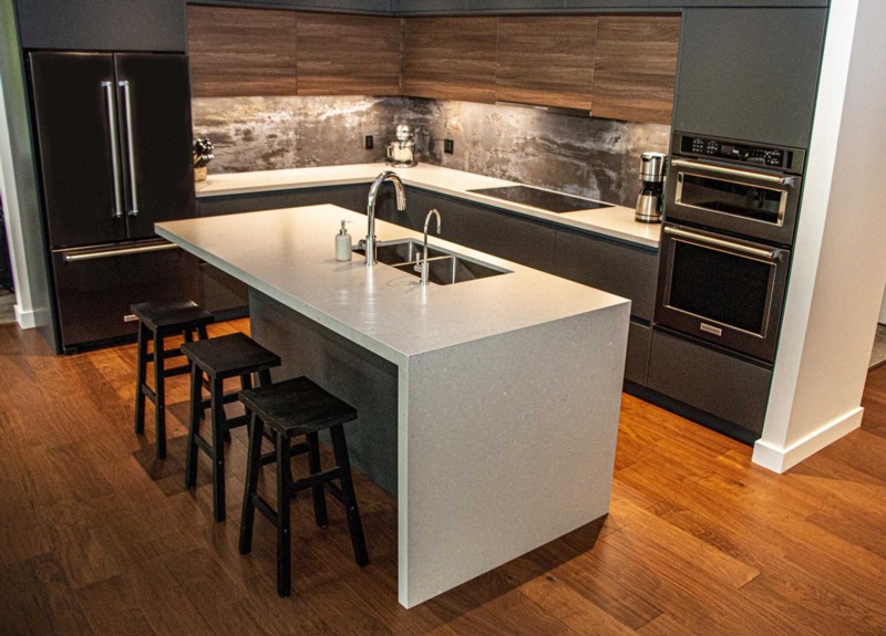 Caesarstone quartz counter with rectangular undermount sink |