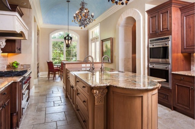 Formal custom maple cabinets, limestone floors & granite counters |