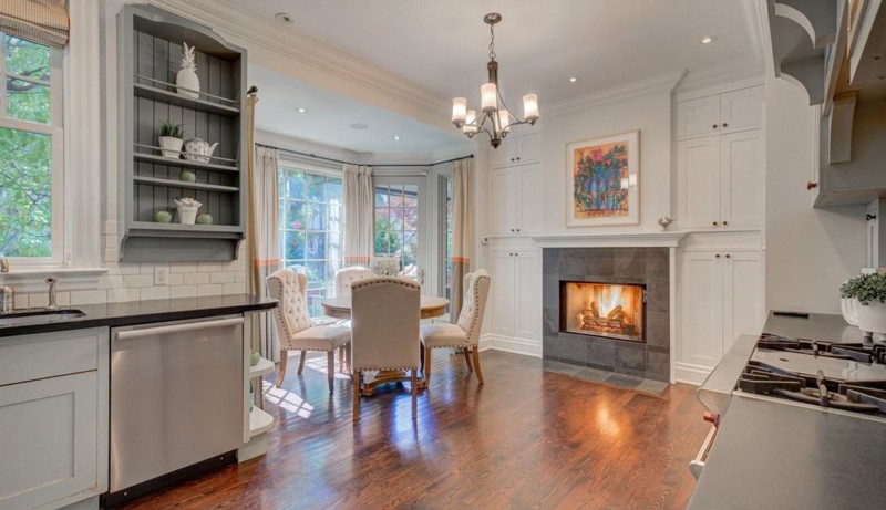 This see-through fireplace brings cheer to both rooms.