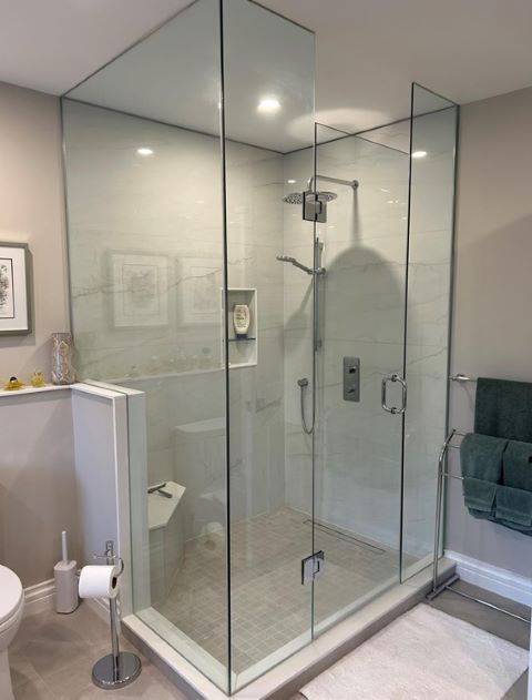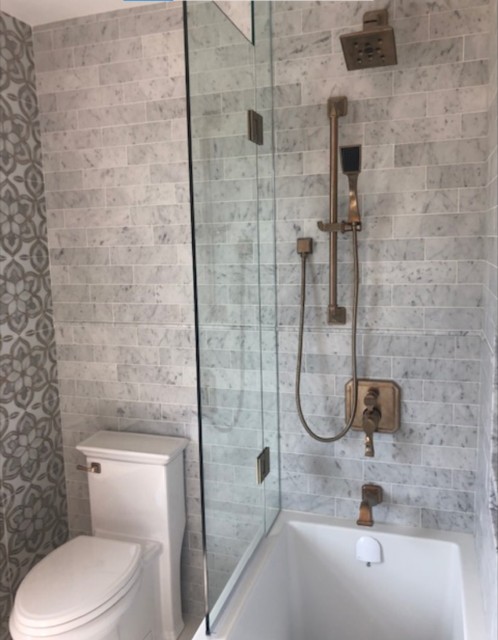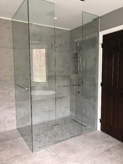 Jazz up your bathroom. Note the multi-function shower fixture & curbless shower entrance.