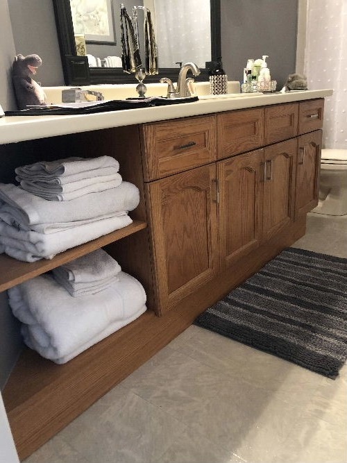 A cute little bathroom reno. Got rid of an old pedestal sink, turned a small